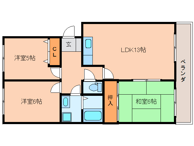 | 間取/面積 | 3LDK (和室6/洋室5.8/洋室5/LDK13) / 66.54m2 | ||