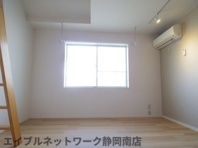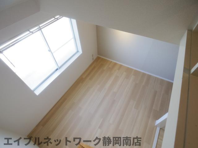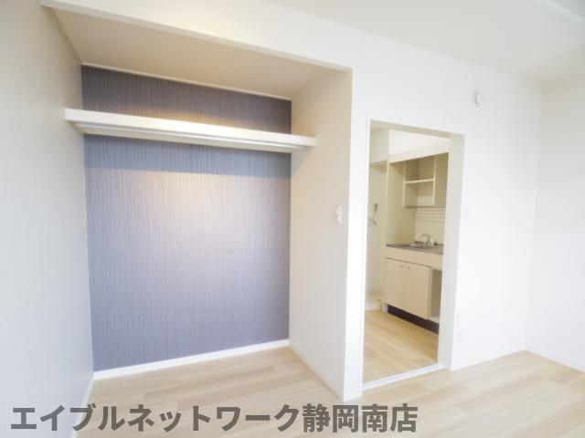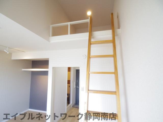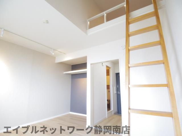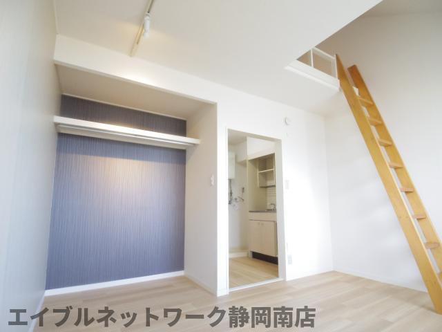インターネット無料。お洒落なデザインのお部屋です。ロフト付きのワンルーム。オープンクローゼットは収納としても大きなスペースで使いやすく、お部屋のデザインとしてもアクセントとなります。ロフトスペースは広く、天井の高い仕様となっておりますので開放感がございます。お問い合わせはエイブルネットワーク静岡南店まで。