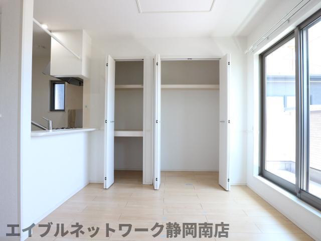 リビングが広々13.3帖で家具の配置が自由自在。収納がたっぷりでお荷物が多くても安心。キッチンは人気のカウンタータイプ、3口コンログリル付きで快適にお料理が楽しめます。追い焚き・浴室乾燥機・シャワー付き洗面台など設備が充実しております。お問い合わせはエイブルネットワーク静岡南店まで。是非一度ご覧ください。