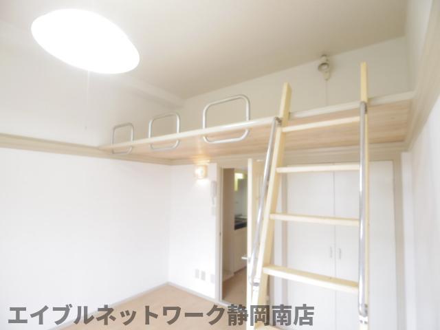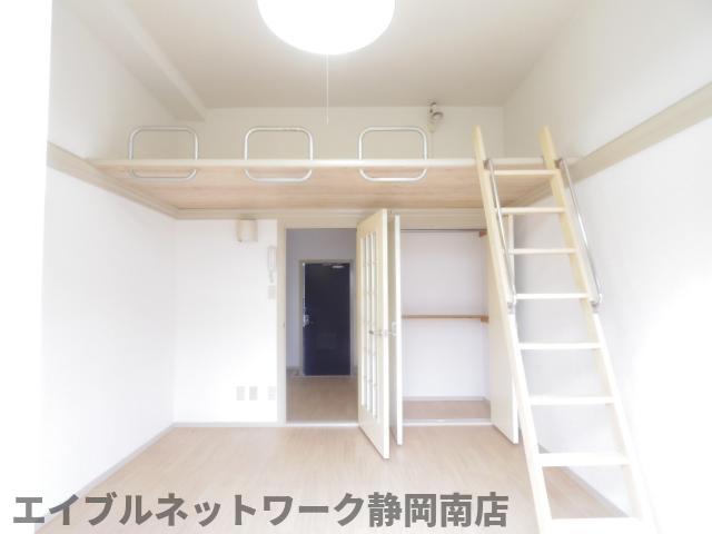 インターネット無料。静岡駅まで徒歩12分。敷金・礼金なし、クリーニング代別途必要。洋室6帖にロフトがついており、スペースを無駄なくお使いいただけます。ロフトは1.5帖。広々としたテラス付き。南東向きです。TVモニターホンも設置致します。お問い合わせはエイブルネットワーク静岡南店まで。是非一度ご覧ください。