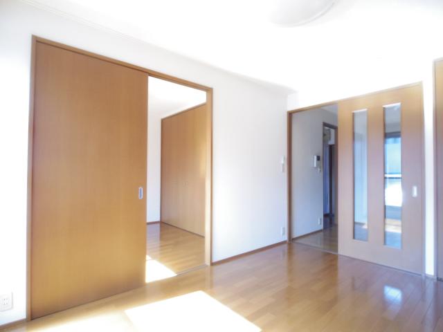 敷金・礼金なし、退去時清掃費用別途必要。駐車場1台無料。お部屋を分けて使いたい方におすすめの2DK。バストイレ別。洋室それぞれに収納があり、お荷物が多くても安心。バルコニーが広く南西向きで日当たり良好。コンビニやスーパーが近くにあり買い物便利な住環境にあります。エアコン、照明、モニター付きインターホン、独立洗面台付き。