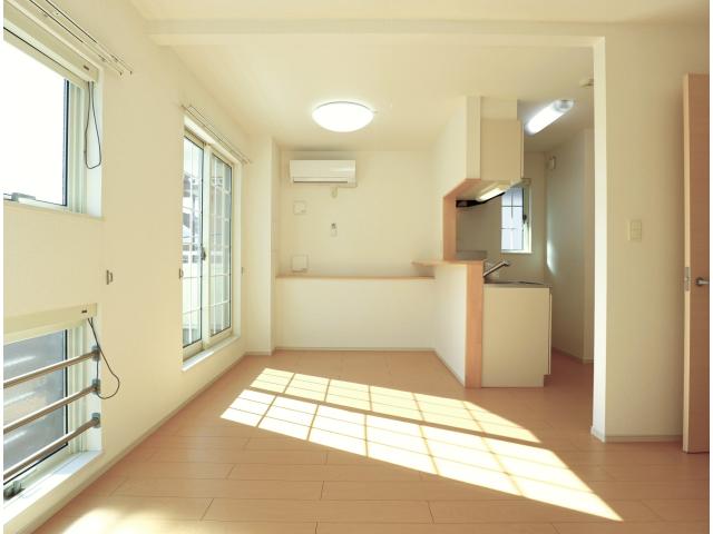 高速インターネット無料。2階角部屋で日当たり風通し良好。1LDKタイプの物件が空いてきましたよ。リビングが開放的でオススメです。収納が豊富で荷物の多い方も安心です。追い焚き、浴室乾燥、温水洗浄便座等、便利な設備が充実しています。都市ガス仕様で月々の光熱費を抑えられます。周辺にお店が多くお買い物に非常に便利な立地です。