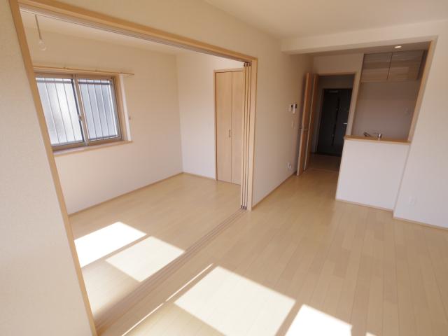 光インターネット無料。最上階角部屋で日当たり・風通り良好。キッチンは人気のカウンタータイプでお部屋のレイアウトがしやすいですよ。リビングと洋室の間の扉を開いて広々お使いいただくことも可能です。ウォークインクローゼットがあり収納たっぷり。システムキッチン・追い焚き・浴室乾燥機・シャワー付き洗面台など設備が充実。