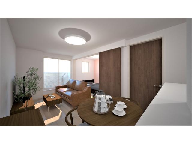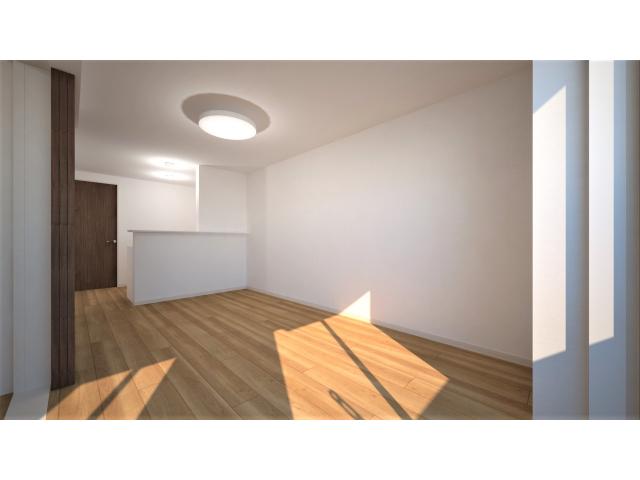 令和8年2月完成予定。緑に囲まれた環境に明るい外観が映えるデザイン。リビングは人気の対面キッチンで友人を招いても会話が弾む空間。3口コンロ付きで料理の幅も広がり自炊派にも嬉しい仕様。インターネット無料で講義の調べ物も動画視聴もサクサク。勉強も遊びも生活もバランスよく楽しめる、学生にも社会人にもフィットする新生活の拠点。